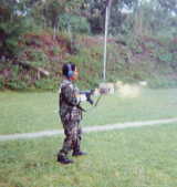 | 私も、ドラムマガジンを装着し フルオート射撃に挑戦した。