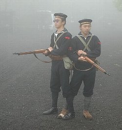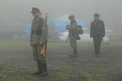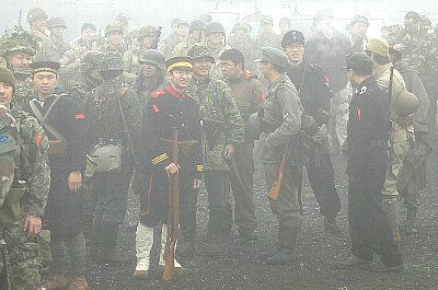 | 大会当日。 濃霧 ・・・見えない・・・・。 | 霧の中、歩哨に立つ帝國海軍 |
