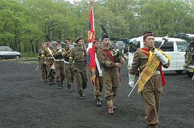 | 行進する大英帝国軍 ピーヒャラ、ピッピッピ・・・・ ♪我は官軍我敵は〜 (バグパイプの音は、表現できないね。) |