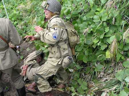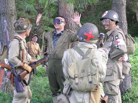 米兵が、捕虜のドイツ兵を盾に、「来るとこいつを撃つぞ〜」と叫んでいる、