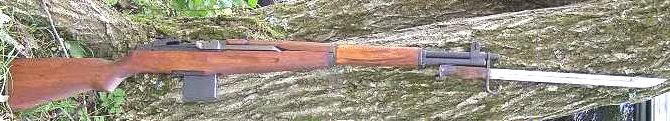 帝國海軍四式自動小銃 M1ライフルの様だが、 三十年式銃剣を着剣、マガジン部、リアサイト、ストックが違う |