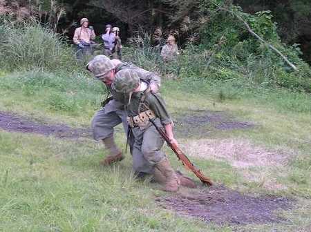 あとから、丘に登ってきた、陸軍兵士と殴り合いに。