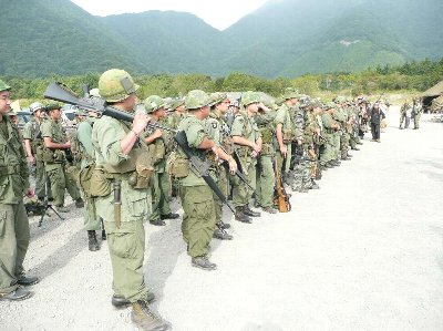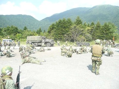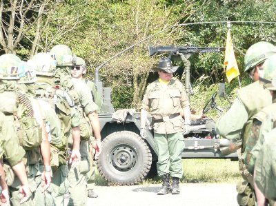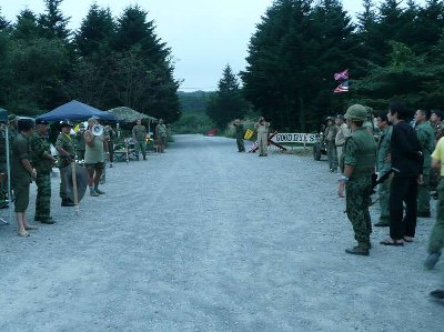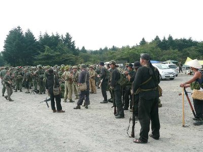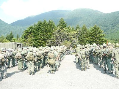 米軍部隊は、全員集合、整列して 大佐のお言葉を聴く。