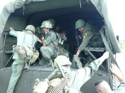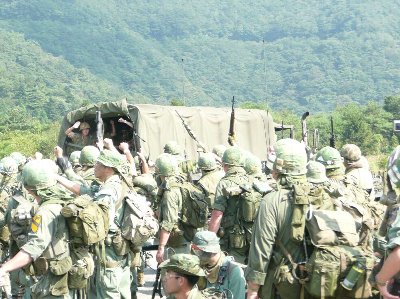 米軍部隊は、各師団毎に、トラックに乗車、出撃していく。