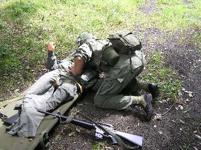 | 「人口呼吸」 。 。責任感、使命感の強い、ある兵士が、 心臓マッサージ そして、 マウス・ツー・マウスの人工呼吸 (でも、人形だからね・・・・・) |