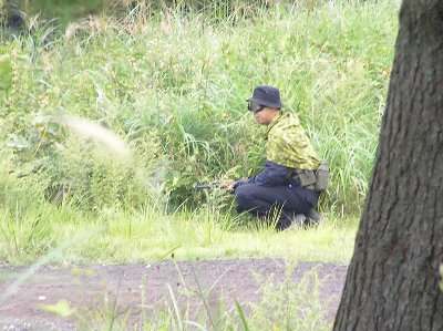 | 「武装解除」 。 。 捕虜なんだから 素直に座れよ〜 。 。 |
