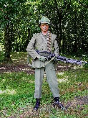 | 「U.S.MC M14ライフルマン」 私の装備は、OG107上下 M1955アーマー、Xサスペンダー M14マガジン&グレネードポーチ、 黒のコンバットブーツ M14ライフルとM6バヨネット 初期の海兵である。 (むむっ、カッコ良い、) |