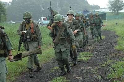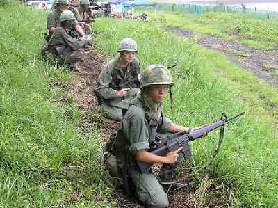 「敵だ〜、」 「ベトコンだ〜 」 と、味方の声