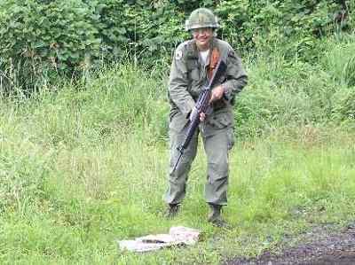 ブッシュを回りこんだ、途端、 発砲音、 ベトコンと、その隊員の相打ちだ、