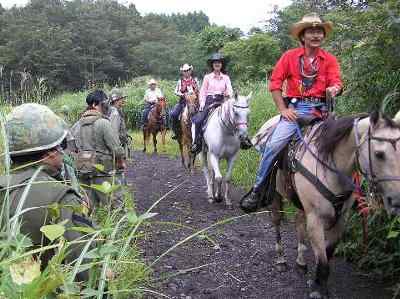 兵隊さん、そこのけそこのけ、お馬が通る。 民間騎馬軍団に、戦闘は一時中止 |