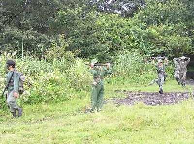 小隊長より、 「第二分隊の後ろの敵を かたずけろ、 3名行かせろ。」と、第一分隊に命令。