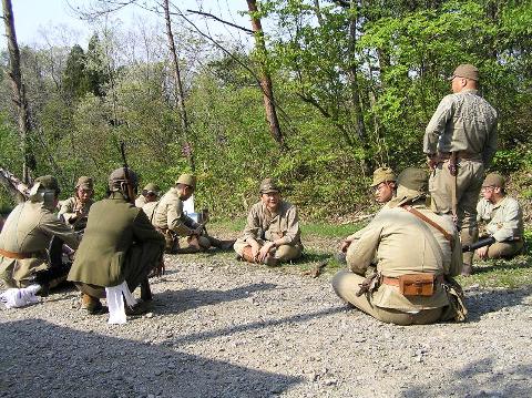 配給の昼飯くって 元気になり、 日本軍守る、塹壕を攻める、