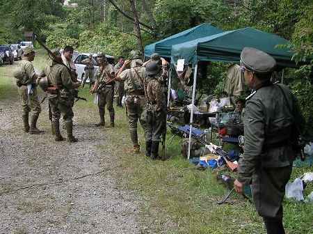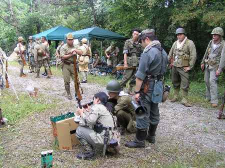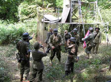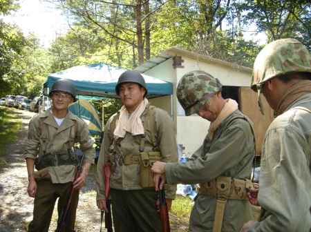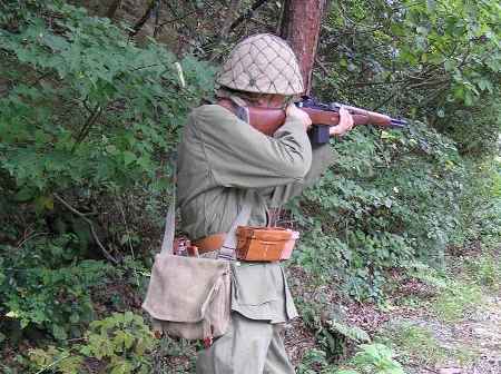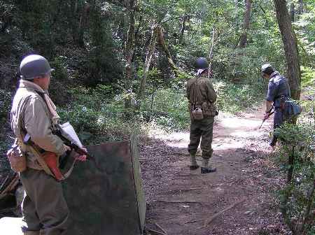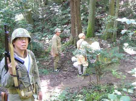 森の中、索敵する、ドイツ兵と米海兵隊 GUNは、日本軍四式小銃 撮影:山賊師団 リリー (良い写真とってくれますね!) |