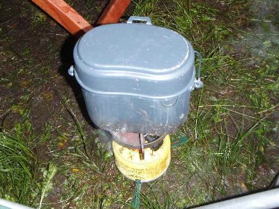 7時過ぎから、朝食 私は、昨夜と同じく、ドイツ軍飯ごうで、炊飯、 鮭の混ぜご飯にする。(フリカケである)