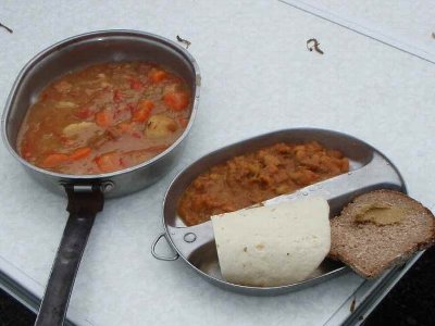 昼食タイム ミズさんが作った、米軍食を、みんなで食べる。